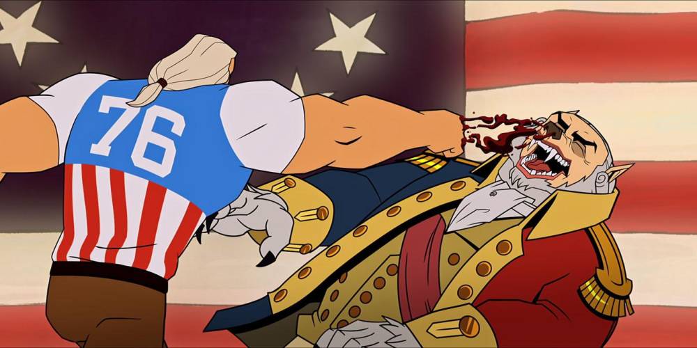 Durante miles de años, el origen de los Estados Unidos de América ha estado envuelto en el misterio, perdido en las arenas del tiempo. ¿Quiénes construyeron esta 'dulce tierra de libertad' y por qué? Solo los dinosaurios lo saben. Pero, por primera vez en la historia de la humanidad, la increíble y totalmente verídica historia del origen de Estados Unidos será revelada en esta loquísima película de animación.
